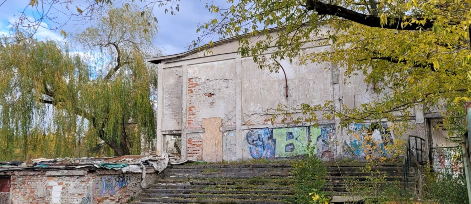 Na podstawie fotografii archiwalnej można stwierdzić, iż 1938 r. wzniesiono budynek hali w stanie surowym oraz przylegające do niej od strony północnej boczne skrzydło (NAC, sygn. 3/1/0/14/85). Przygotowania do otwarcia hali dla sportowców przerwał wybuch II wojny światowej. Budynek hali wykorzystywany był w okresie wojennym jako drukarnia, w parterowym murowanym skrzydle mieściły się pomieszczenia pomocnicze (karta ewidencyjna, E. Kalnoj). Teren w sąsiedztwie hali pozostawał niezabudowany.